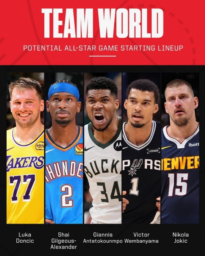 未来篮球巅峰对决!世界队潜在首发五虎:东契奇领衔,字母哥&约基奇坐镇
