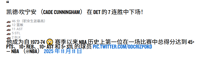 活塞队在周一的 7 场比赛中压哨绝杀比比皆是,活塞队取得了 9 连胜