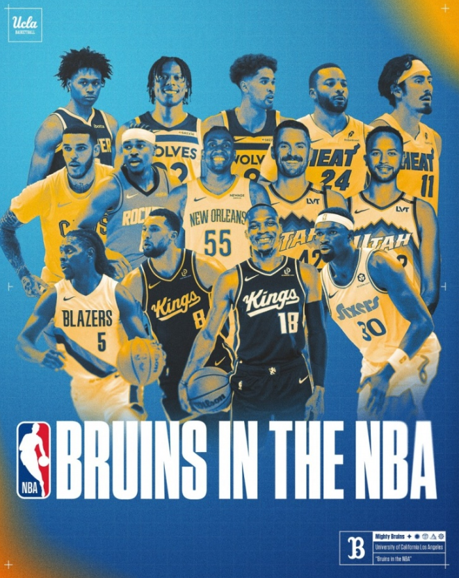直播吧10月22日讯 今日,NCAA传统名校UCLA(加州大学洛杉矶分校)官方社交媒体更新动态,晒出了一组由该校输送到NBA的现役球员合集,为新赛季正式启航的校友们加油助威。 官方社媒配文简洁而有力